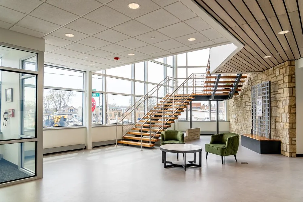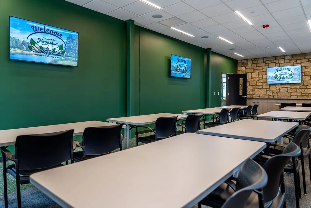 The Village of Kewaskum celebrated its 130th anniversary in a meaningful way, with a brand-new Village Hall and Police Department building. This project included multiple conference rooms and offices, a squad room, and a police car garage on the main level. The second level features a village boardroom, offices, a working room, and conference rooms. Excel enjoyed the opportunity to work with the village and police department to provide a space that enhances the community. Drawing inspiration from the surrounding buildings, we created a cohesive experience for guests.