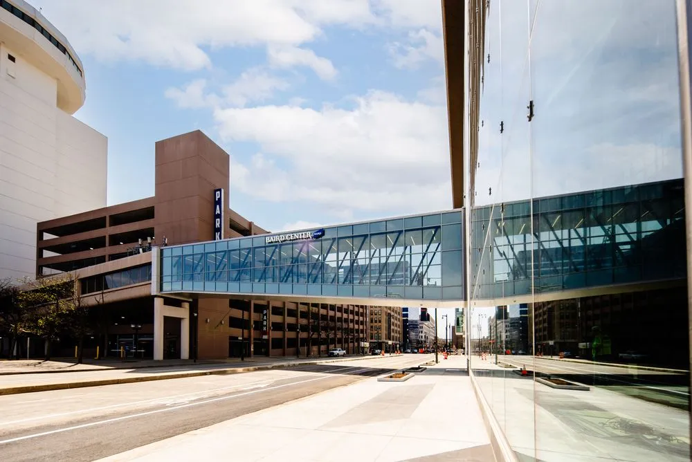 Our team had the opportunity to provide engineering and drafting on this historic project. Our scope of work totaled about 40,000 square feet. Shown in the photo is the 100-foot-long bridge our team engineered that allows pedestrians to cross over Vel R. Phillips Avenue.