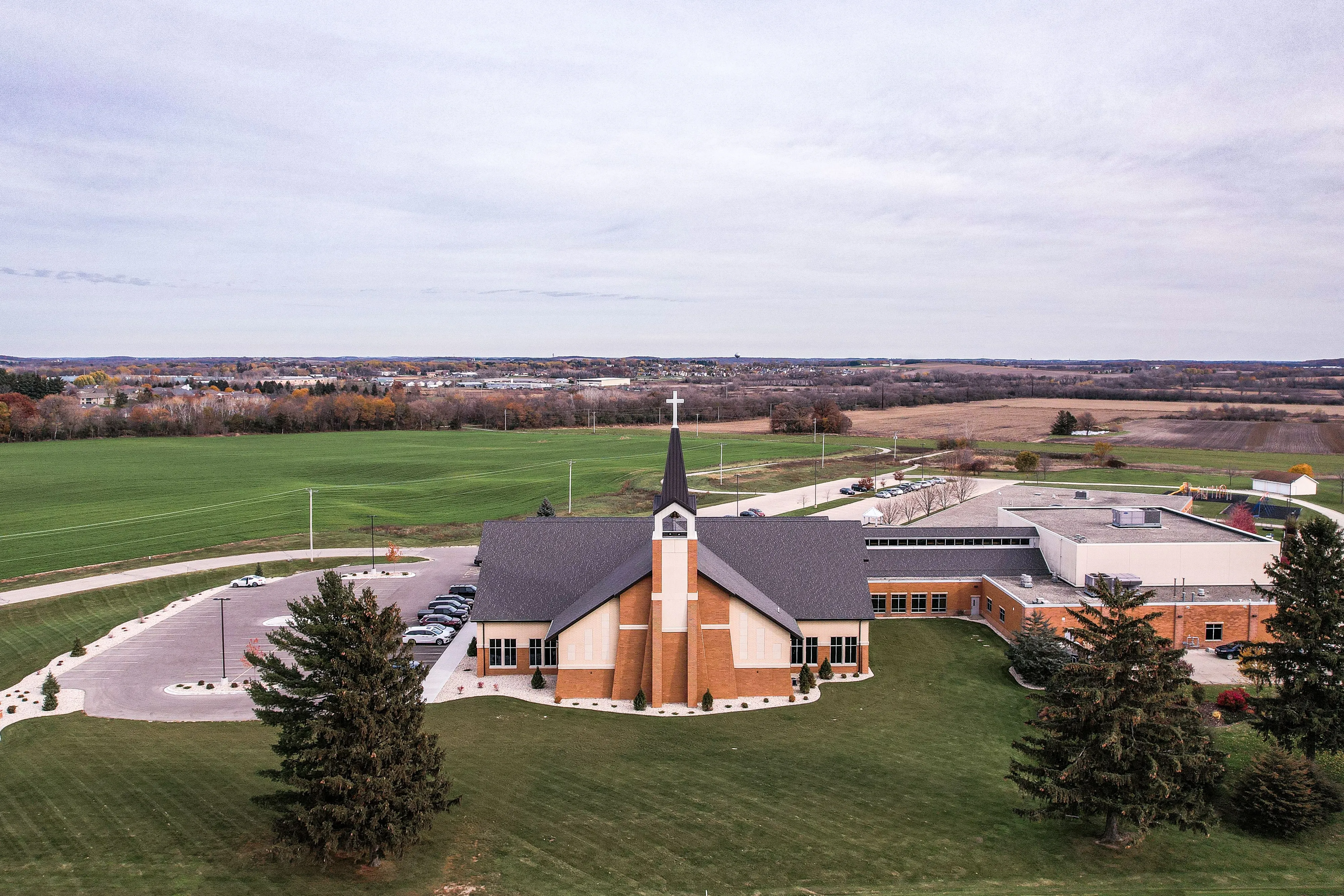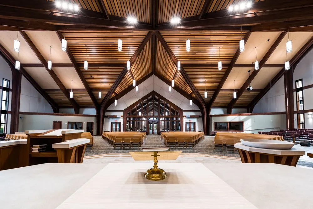 The congregation at St. Paul Lutheran Church and School was using a multi-purpose space to worship and was ready for a permanent space. Our team provided master programming to help determine how to utilize the church's site. We designed a new 700-seat worship facility constructed with a large-span laminated wood structural system. The project also included a chapel, fellowship area, library, coffee area, and offices.
